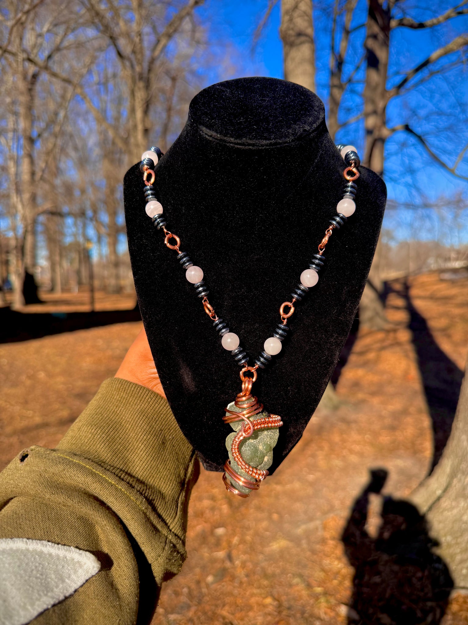 Wrapped in copper—an energetic conductor—this necklace amplifies the healing properties of each stone while encouraging balanced energy flow throughout the body. Together, these elements create a supportive harmony of love, clarity, and grounding, helping you feel safe to open your heart while remaining rooted and protected. If you’re drawn to this piece, your spirit may be calling for gentleness, emotional security, and steady inner balance. Let it be your reminder that vulnerability and strength can coexist beautifully.